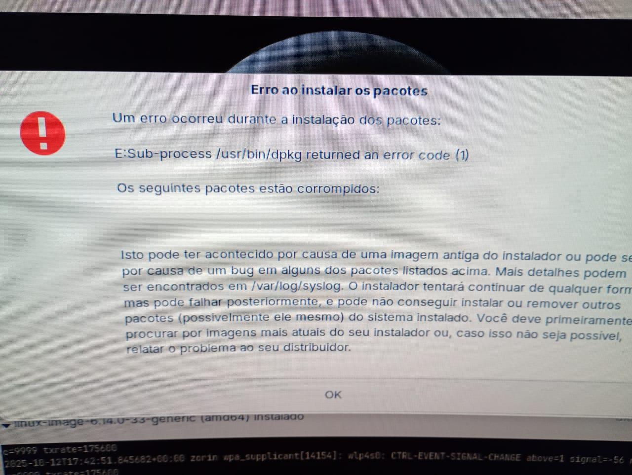 I had a problem with my laptop and am trying to install the same systems I had on another laptop. I was able to install Linux Mint normally, but I can't install Zorin. I first tried using an ISO I had downloaded a few days ago, right after the Zorin 18 beta was released, but it didn't work. I downloaded a new ISO file today and the same problem occurred. During installation, the attached message appears.