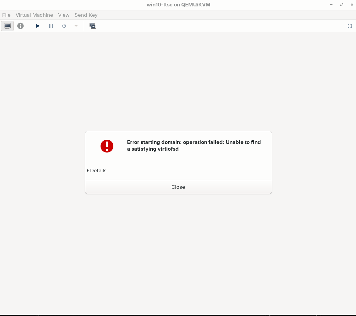 Thanks but I did that. When I start the vm I get the error "Error starting domain: operation failed: Unable to find a satisfying virtiofsd". So I'm unable to install Winfsp and enable the service.