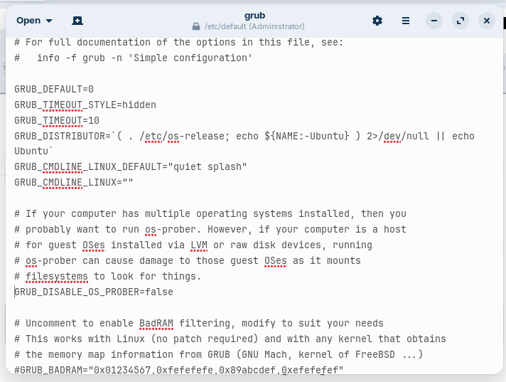 gnome-text-editor admin:///etc/default/grub -