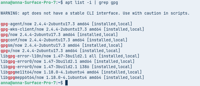 apt list -i | grep gpg