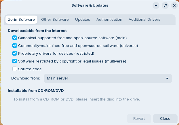 Thank you for the reply. I have already tried setting main server as the source without luck. How can I manually add the gpg packages? I tried doing that the other day based on some googling without luck (apologies, I'm not very familiar with Linux)