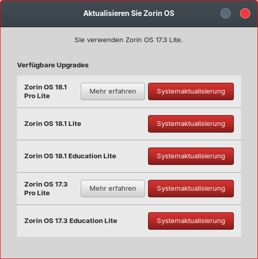 The upgrader tool is ready to upgrade Zorin 17 Lite to Zorin 18.1 Lite. Today it was shown as message in my system that the upgrade is available now.