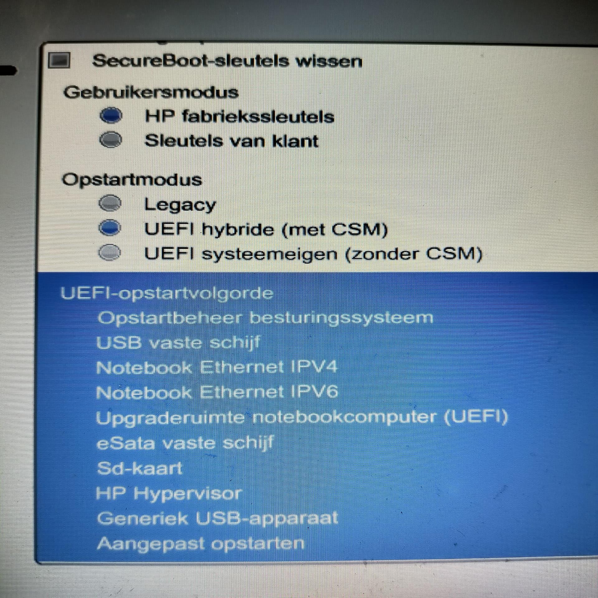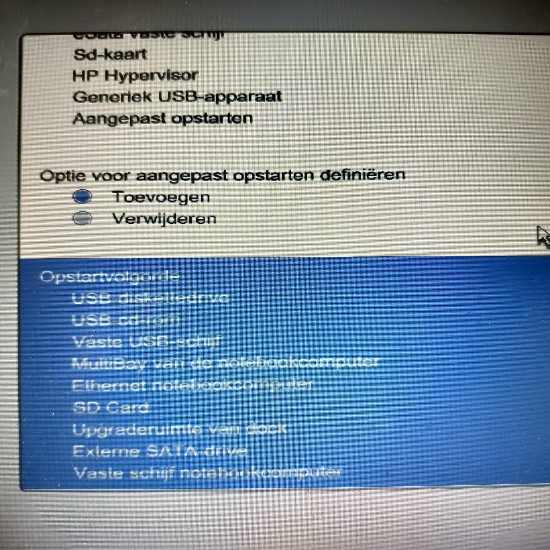 I changed the order to all USB-options first, and 'fixed disk of the notebook computer' as the very last, see the picture below.