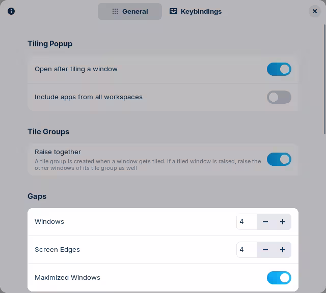 Likewise, the tiling window feature doesn't intercept requests to the renderer to maximize windows. That means that using the usual double-click on the top bar or clicking on the maximize button won't work.