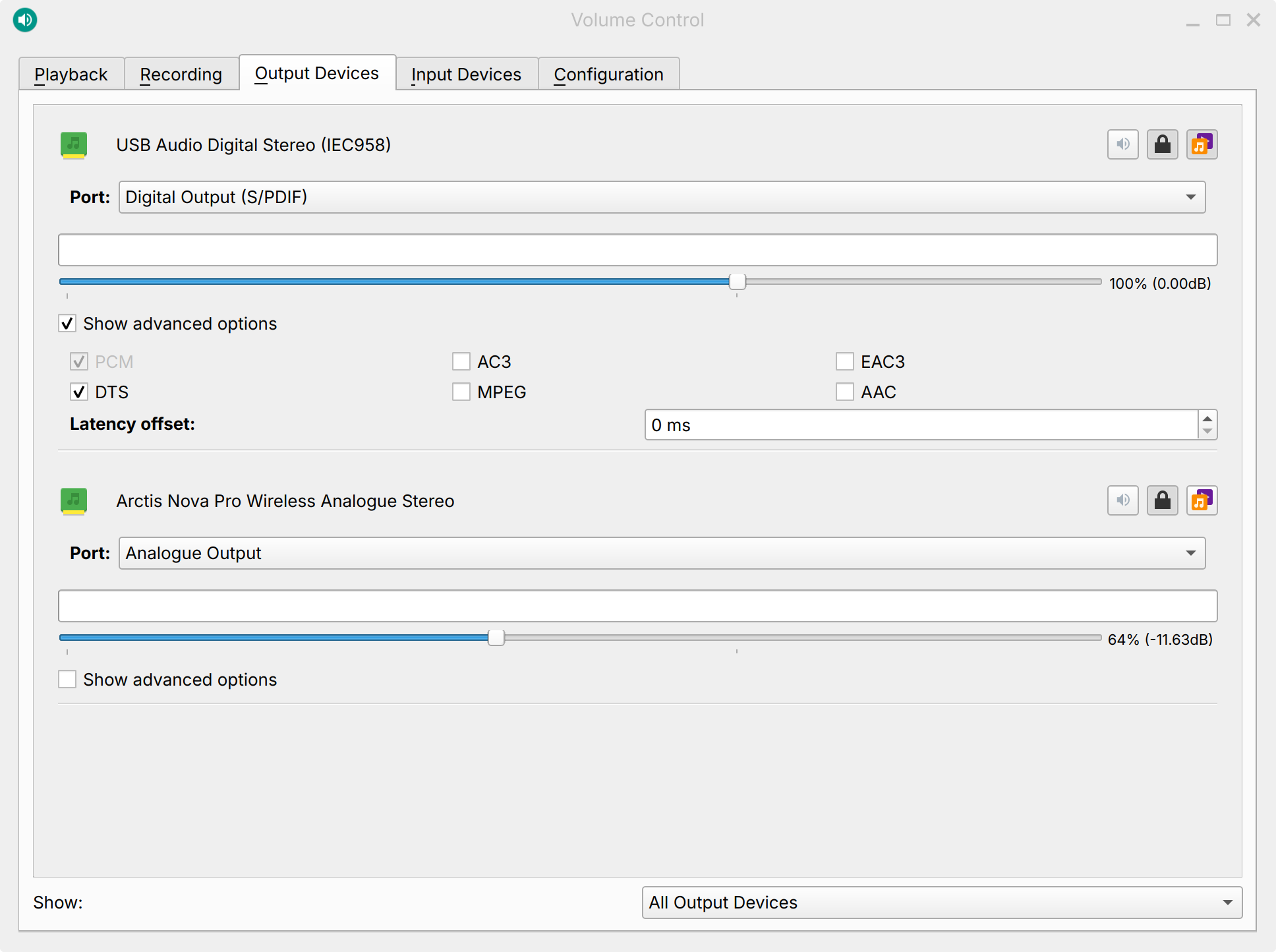This is the Output tab from Pulse. At the moment I have it set to Analogue.