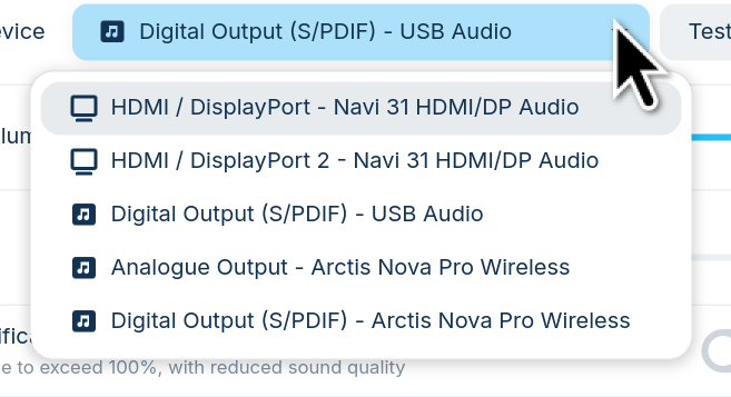 What happens when You choose this Option? I mean S/-PDIF - Arctis Nova Pro Wireless. Do You get there from any Device Sound? And could You please show a Screenshot from PulseAudio with the Output Tab please? So that all Output Devices are visible.