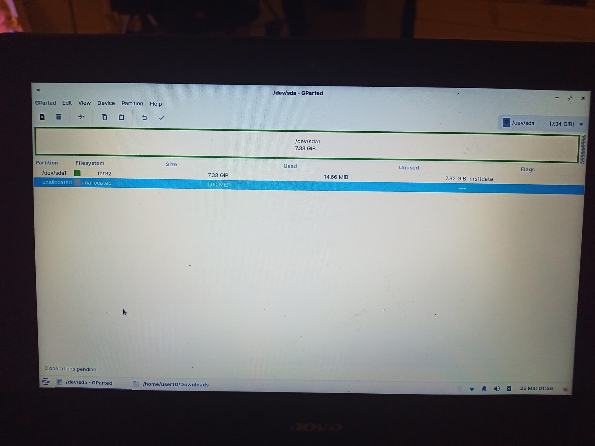 I used /dev/sda since that is what is shown in your Gparted 8gig disk screenshot.
