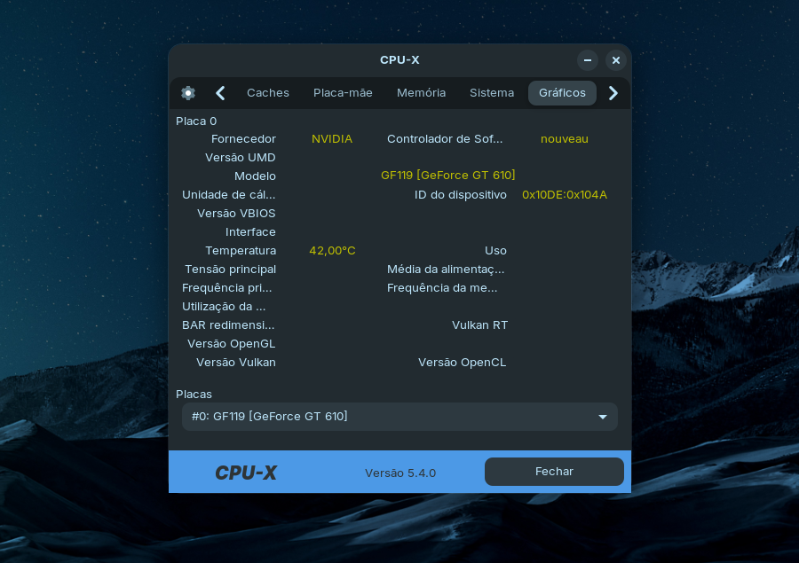 Hi friend, it took me a while because I had to mount all the peripherals from my main machine to the old PC. I couldn't successfully run the command you requested, as it returned without response. However, I ran "lshw", installed CPU-X, and took some screenshots for you to check. I'm at your service for any further questions about using the GT610. Best regards!