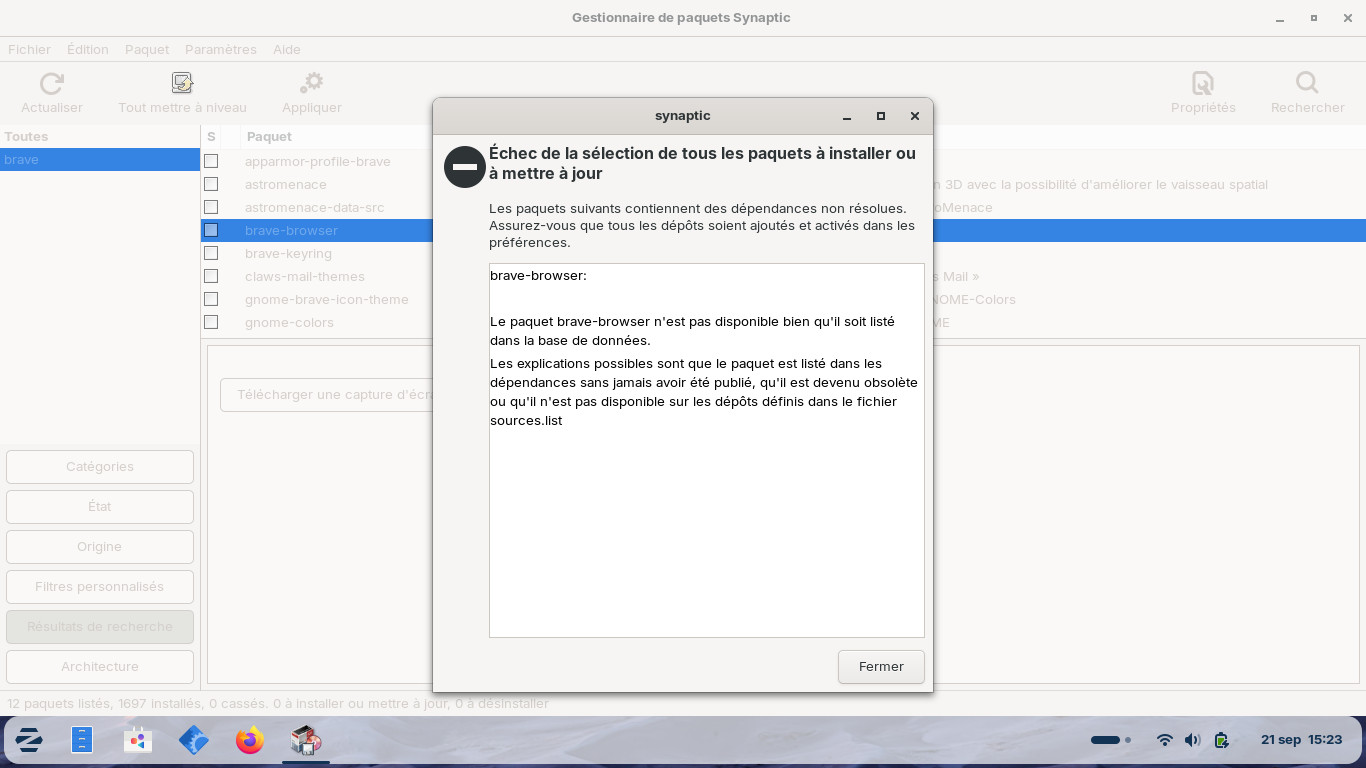 Chromium, a little problem with the graphics server. So, I wanted to reinstall Brave: