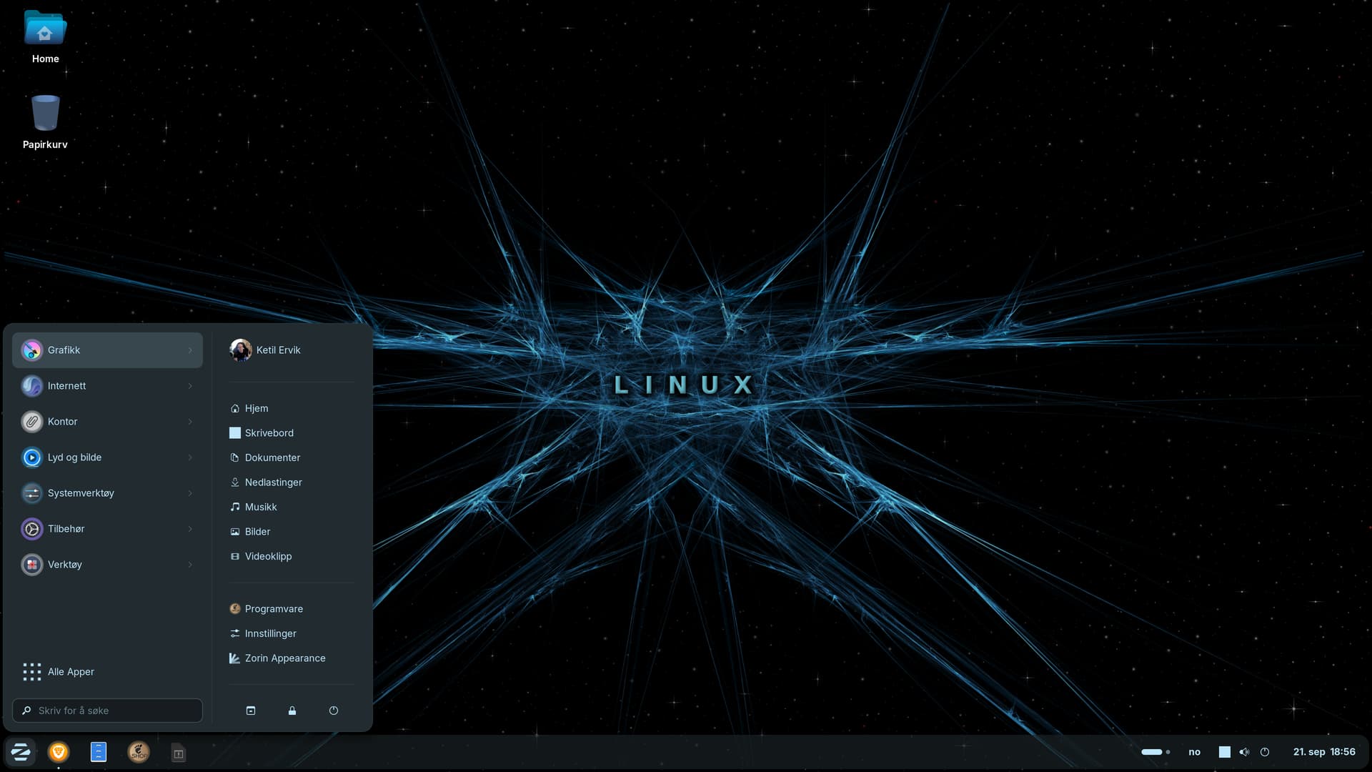 The picture shows my desktop after changing the appearance a bit in Zorin OS 18.