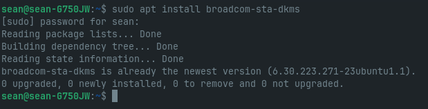 sudo apt reinstall broadcom-sta-dkms and then reboot.