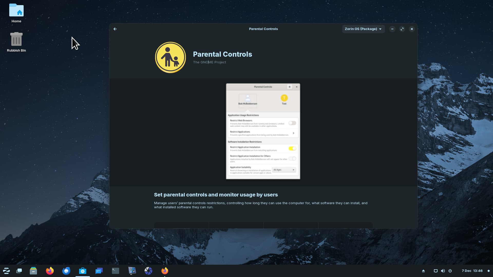 Parental Controls not showing in Menu but if I start typing 'Parent ...' It takes me to the App Store page saying it is installed and Zorin software but nothing runs: