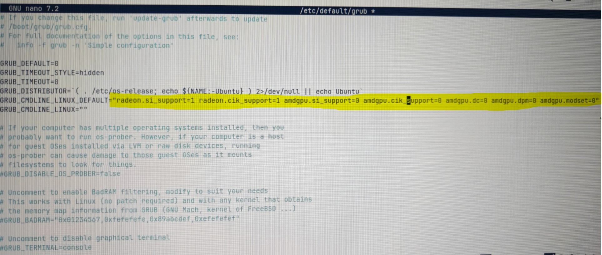 many thanks!!!! i can confirm setting this GRUB_CMDLINE_LINUX_DEFAULT="radeon.si_support=1 radeon.cik_support=1 amdgpu.si_support=0 amdgpu.cik_support=0 amdgpu.dc=0 amdgpu.dpm=0 amdgpu.modeset=0" in the kernel parameters worked and the os is now able to see my dedicated gpu!!!