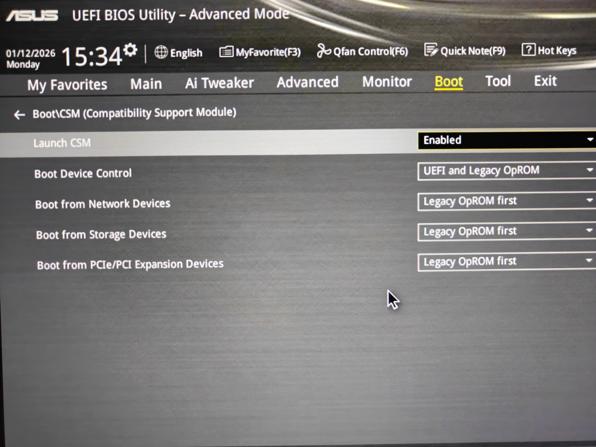 disabled CSM in Bios,