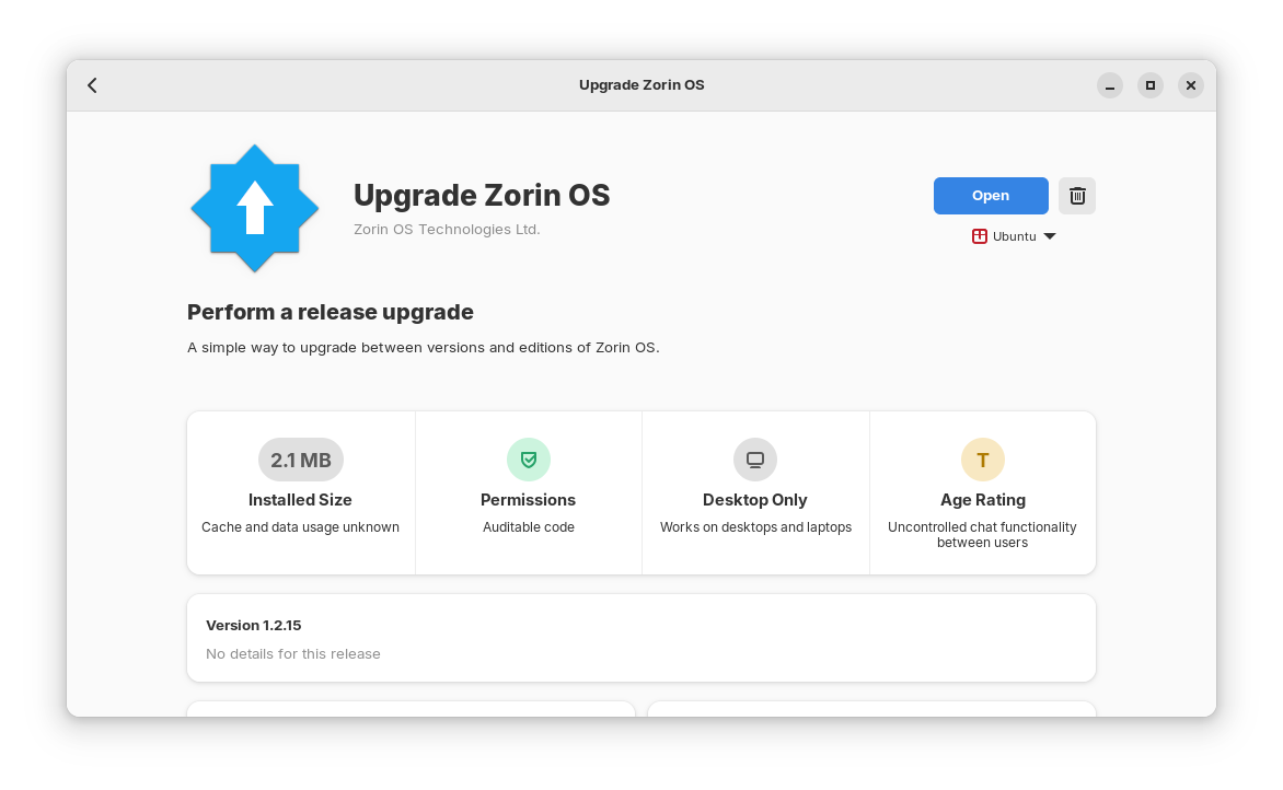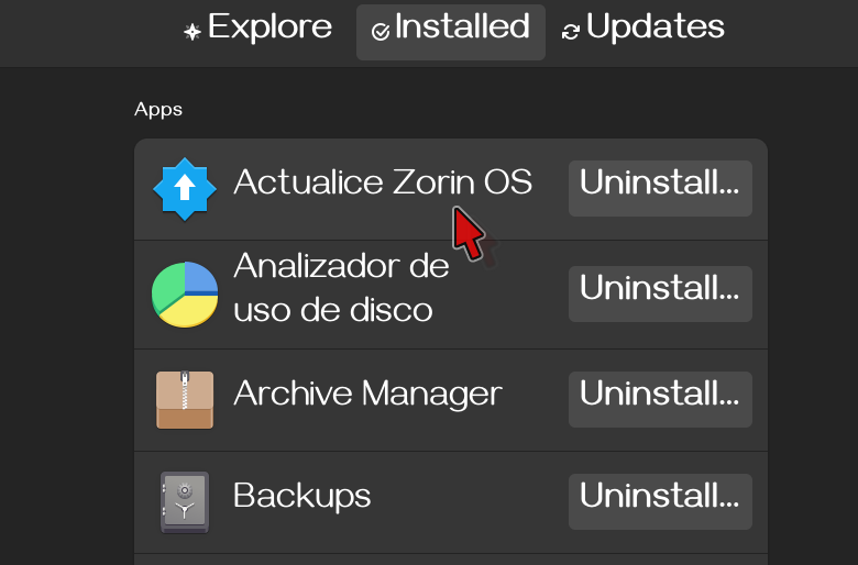 update the app Update Zorin