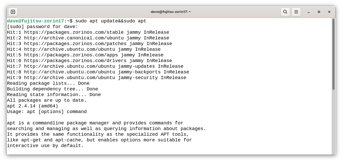 sudo apt update && sudo apt upgrade