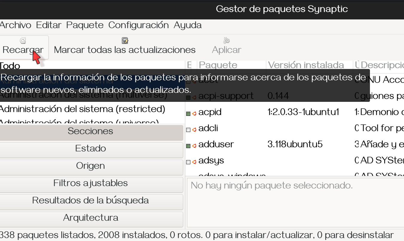 and open Tool of system and open Synaptic Gestor Packets and