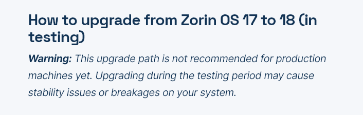 I'm currently running Zorin Pro 17.3. I know that 18 is out but I've never been notified. After reading several other posts, I'm unsure whether I should be seeing an automatic update (doesn't seem so) or even a notification, or whether I should even attempt to update. And is each update a new purchase?