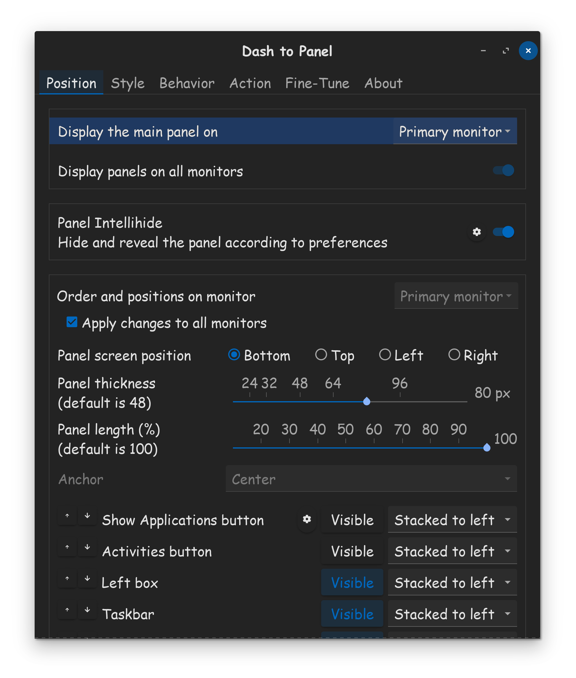Is there any way of applying the "Order and position" so that settings can be applied to whichever monitor is currently primary?