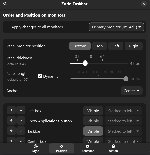 However when I'm away from the office and just using my laptop, I'd like that to adopt the settings for the primary screen as currently it shows the minimal taskbar like when I have the external screens, and so I have to go into the Zorin Taskbar extension and turn everything else on or off every time I change from single to multiple screens.